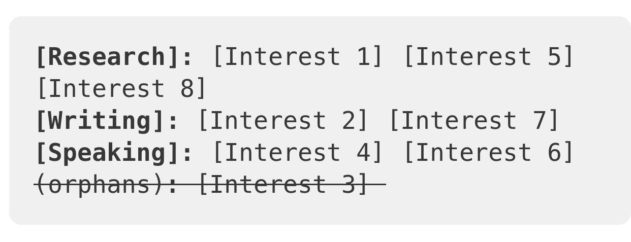 Ideally, what you’re doing here is aligning which interests could realistically work together if you pursued them at the same time.
