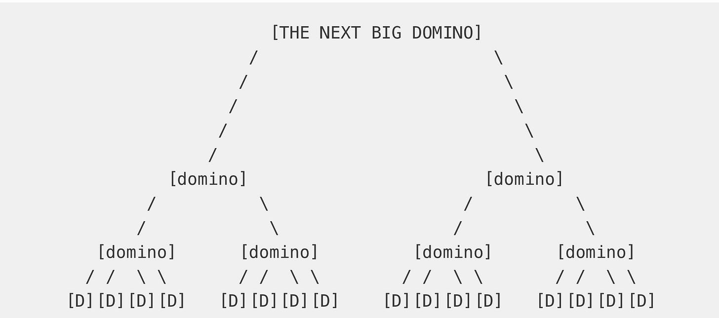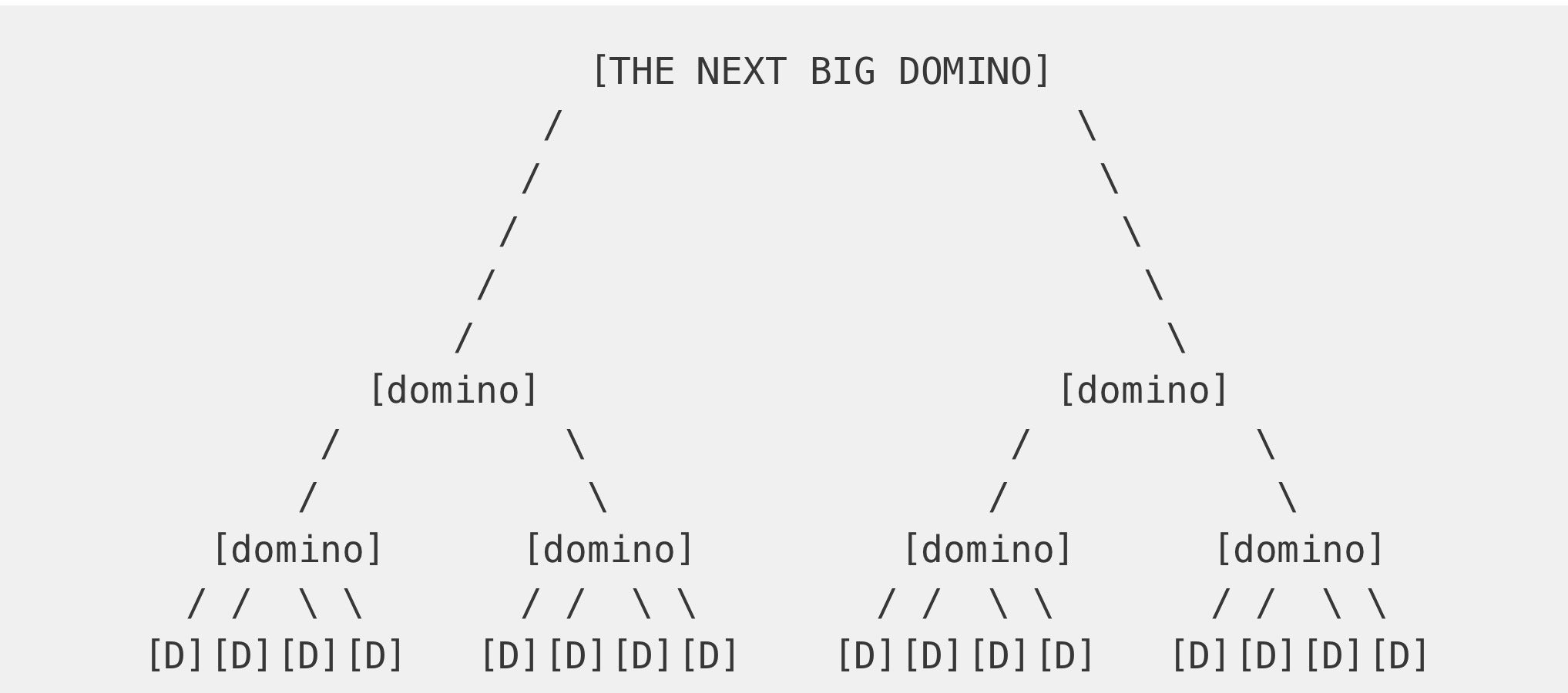 That outcome might feel far away, but it’s still useful. In this case, the Big Domino is already visible at the top of the pyramid.